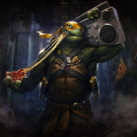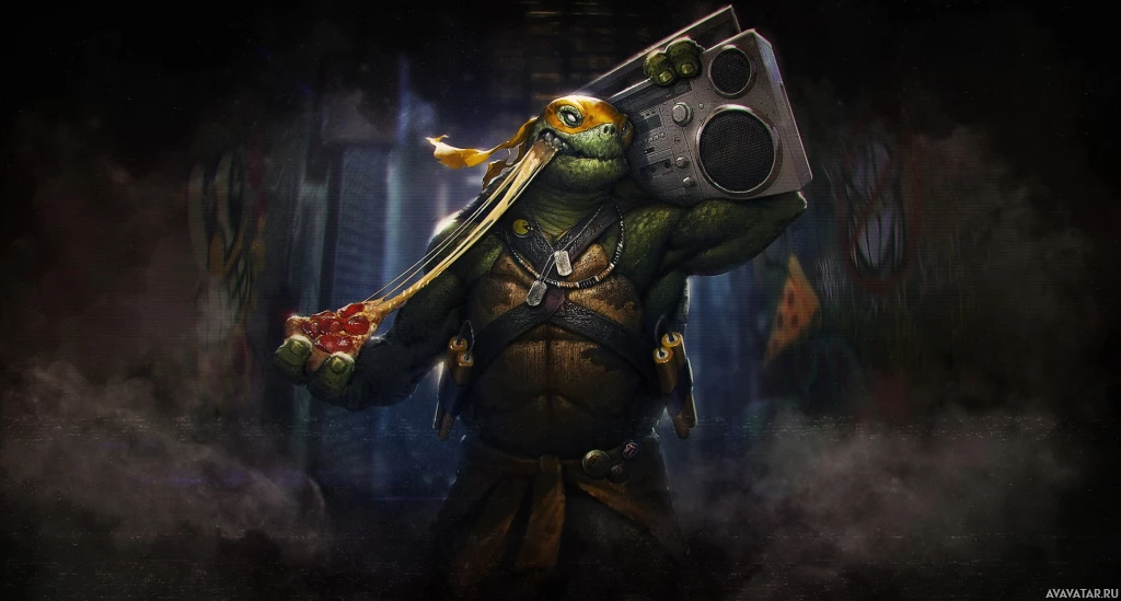 The image features a character known as Michelangelo from the Teenage