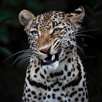 fur pattern with rosette shapes on the body and a ringed tail. It appears to be in