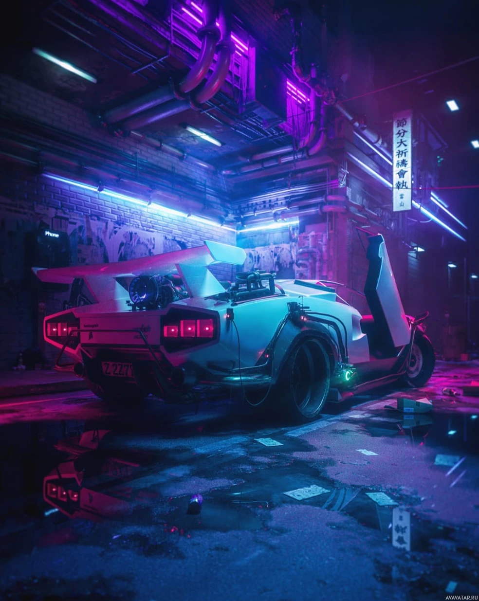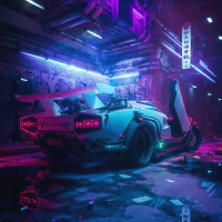 neon accents illuminating the undercarriage. It's set in