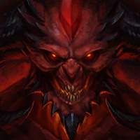 glowing eyes with a menacing expression. The creature is adorned with what appears to be horns or antlers, and there are additional details that suggest spikes or armor, contributing to the intimidating appearance of this