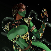 a female character from the Mortal Kombat series, known as Jade. She is depicted in