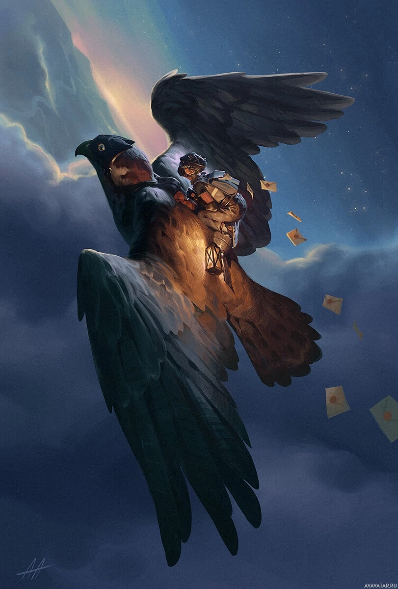 a sense of adventure and divine intervention. There are also smaller birds flying around