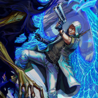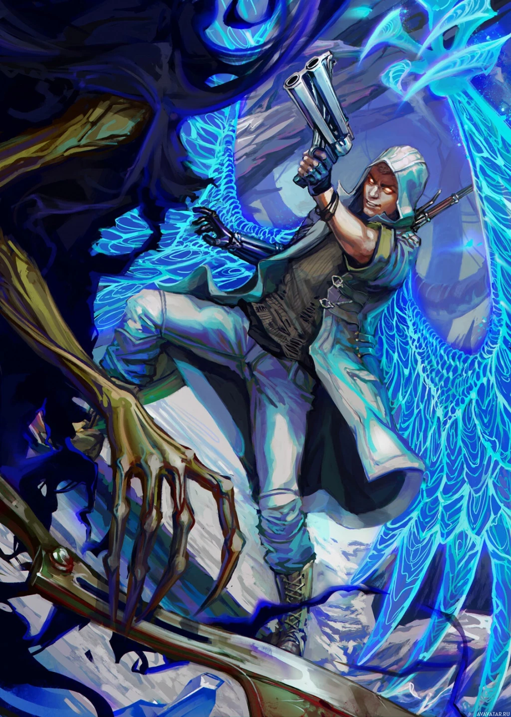The image depicts a stylized, artistic rendering of a character in what appears to be