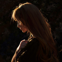 a peaceful moment, possibly during sunset or sunrise due to the warm lighting on her face.