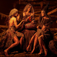 witch attire, with each character having distinctive features such as cloaks, brooms, and hats that contribute to their fantasy-inspired outfits. The image has been watermarked with "KRAE," which might indicate the photographer or studio that took the photo, likely for cosplay purposes.