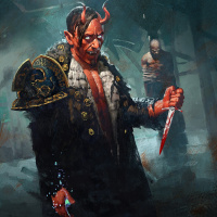 a demonic figure. This character is holding a knife and appears to be in a menacing or threatening pose. There is another