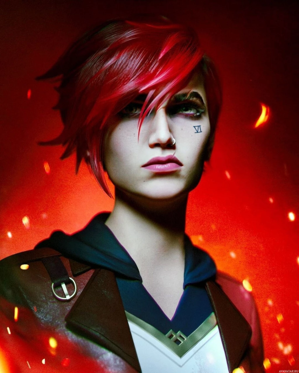 the video game "League of Legends," known as Vi. She is a fighter champion with distinctive