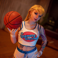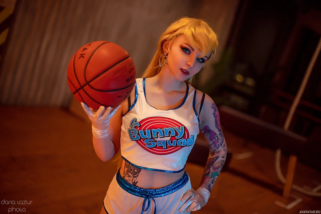 In this image, there is a person dressed in a costume. The individual appears to be cosplaying as Lola Bunny, a character from the Looney Tunes