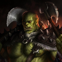 The image shows a fantasy-themed illustration of an orc. This creature is depicted in a menacing and aggressive pose, holding