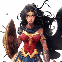 The image shows an illustration of Wonder Woman, a popular