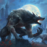 a full moon, which adds to the nocturnal atmosphere and might suggest that they have been transformed under its light. The artwork is richly detailed, suggesting it could be from