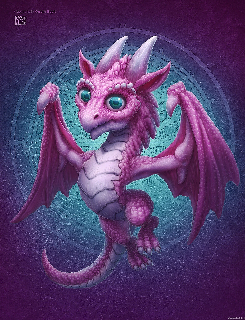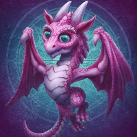 The image shows a fantasy-themed illustration of a dragon. It appears to be a colorful and playful representation, with the dragon's wings outstretched in