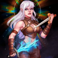 fantasy characters designed to appear strong and capable of combat. The background has a stylized