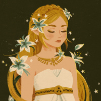 a floral wreath on her head, adding to the tranquil vibe of the artwork. The overall style is reminiscent of fantasy or fairy tale illustrations, often associated with