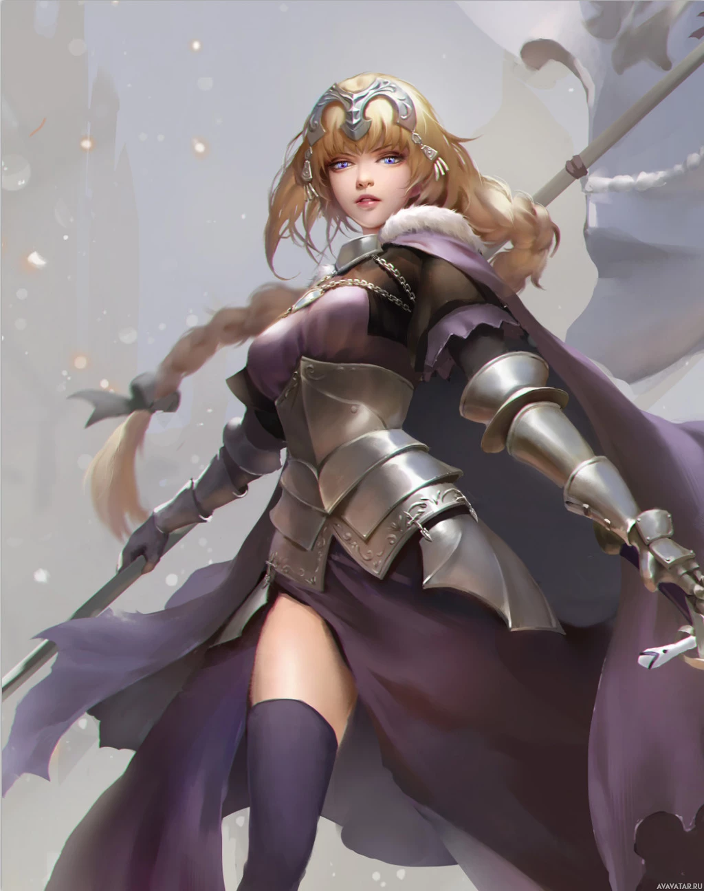a female warrior with blonde hair. She is wearing armor and holding a sword, suggesting she may be part of a fantasy or
