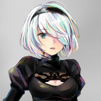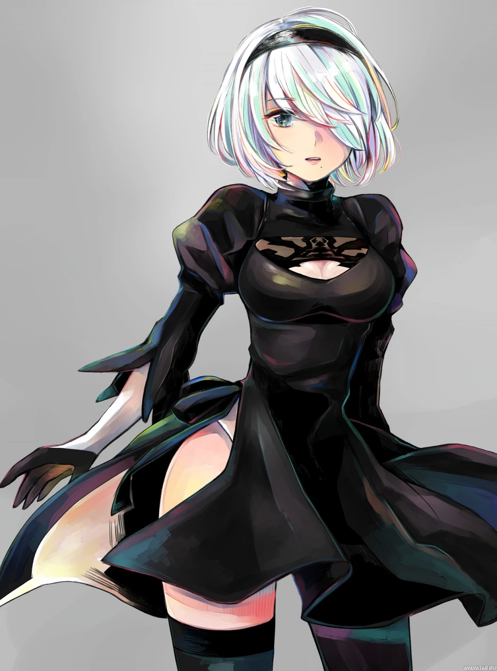 the video game "Nier: Automata." The character depicted here is 2B, a playable android with