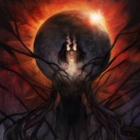 a magical outfit. Surrounding the central figure are dark, twisted