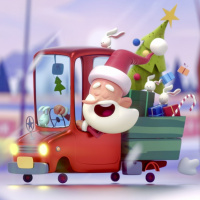 the holiday season. Santa appears to be enjoying himself while delivering gifts, indicating that this could be related to