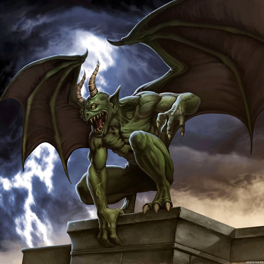 a fantasy creature, commonly referred to as a gargoyle or devil. It has demonic features such as