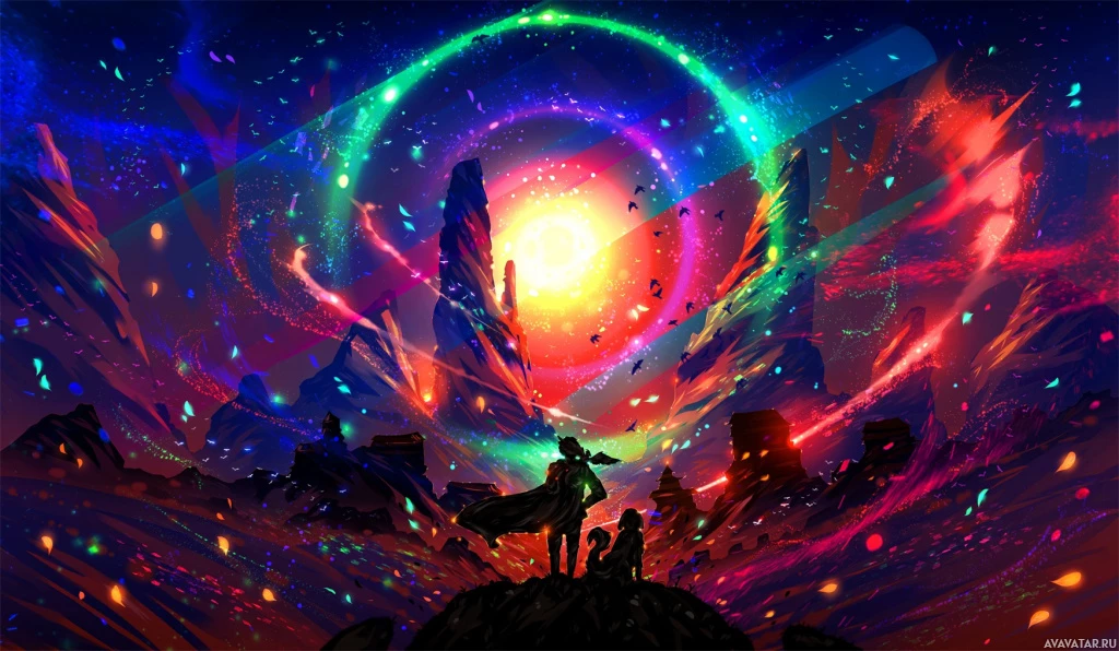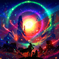 cosmic event taking place. This style is often associated with digital artwork, and it might represent a scene from a fantasy or science