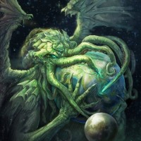 a fantastical creature that resembles a Cthulhu-like entity, which is often associated with mythos and horror-fantasy themes. This creature has tentacles,