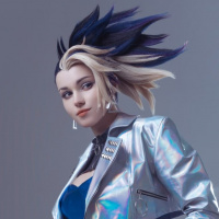 League of Legends." This style is commonly referred to as cosplay. The character's appearance includes a futuristic, high-tech look with reflective materials and