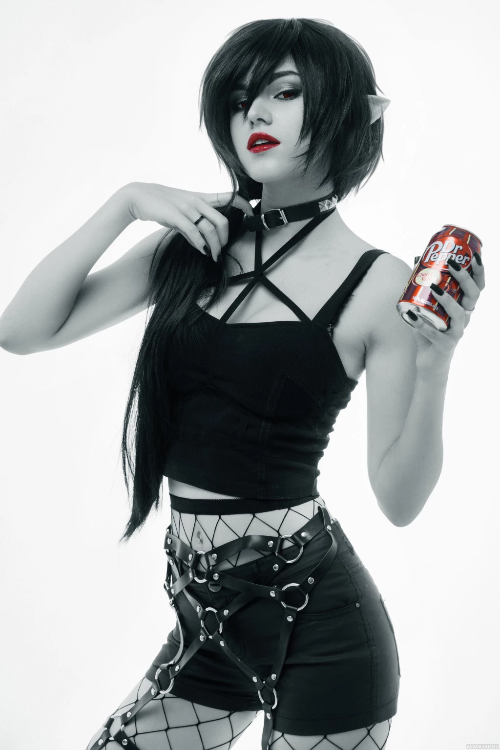 The image features a person in costume, appearing to be inspired by the character Marceline from