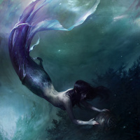 The image depicts a fantasy-themed illustration of a mermaid. The character is shown with human-like features, such as hair and eyes, but has