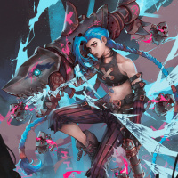 The image features a stylized illustration of a character that is commonly known as Jinx from the game "