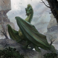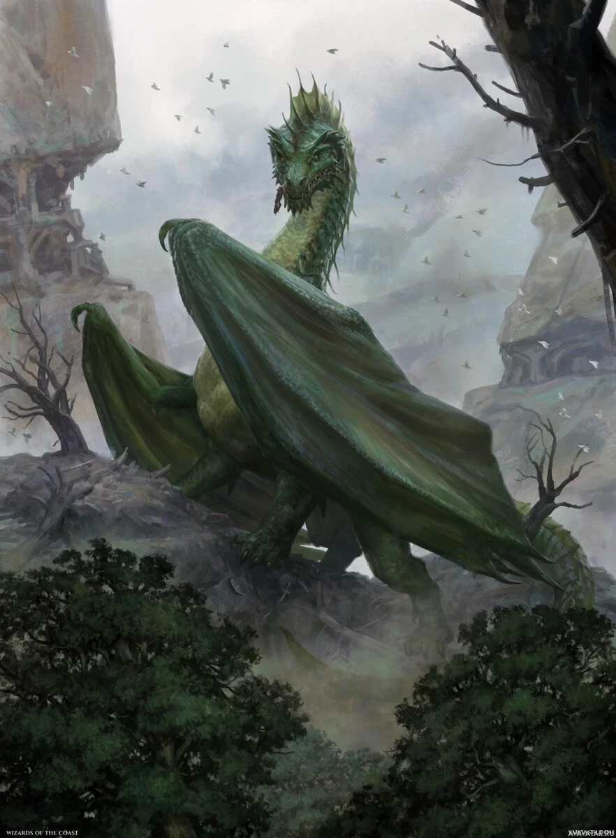 fantasy genres. The dragon is depicted as majestic and powerful, perched on