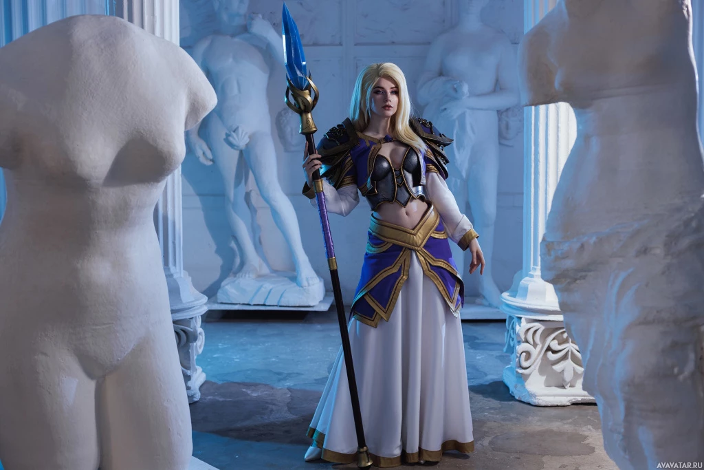 The image shows a person dressed in costume, portraying the character Jaina Proudmoore from