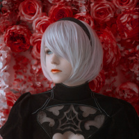 The image features a character from the game "Nier: Automata." This character is known for her distinctive appearance, including a black and white outfit with