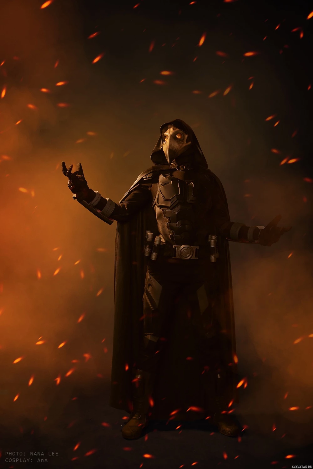 На картинке изображен персонаж, напоминающий злодейского лорда ситхов Дарта Сидиуса из франшизы "Звездные войны". Он изображен с поднятыми руками и, кажется, стоит посреди впечатляющих световых эффектов, возможно, представляющих огонь или энергию. Одежда и поза персонажа наводят на мысль, что он находится в сцене власти или завоевания.