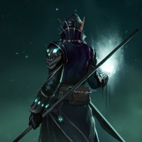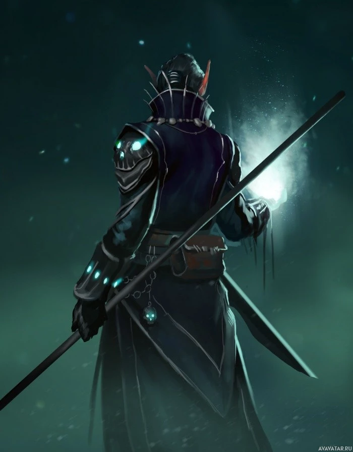 an animated character who appears to be a fantasy or elf-like figure. The character is standing in what looks like a mystical or magical setting, with dark and moody lighting that suggests a nighttime or