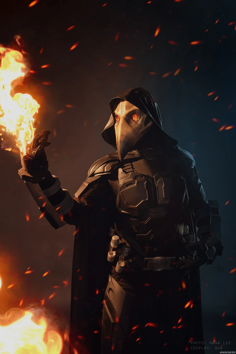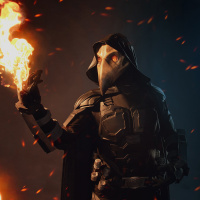 fire effects. This character is holding what appears to be a torch or a lighted object that emits