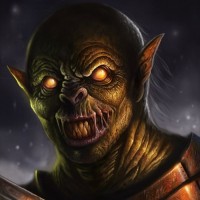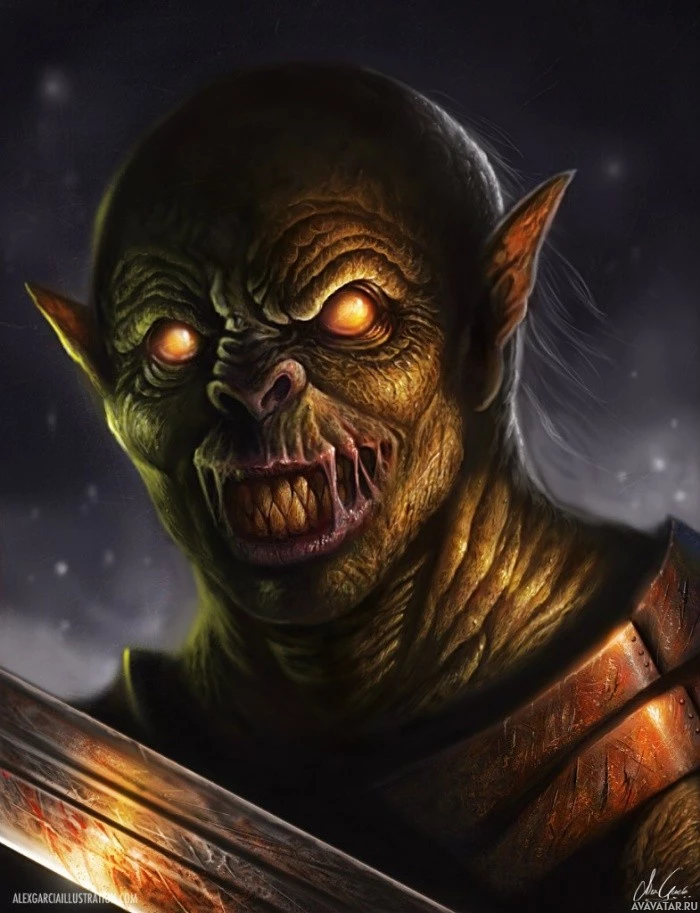 fierce expression of the orc character, enhancing the fantasy element of the image.