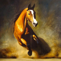 a dynamic scene of a horse in full gallop. The horse is