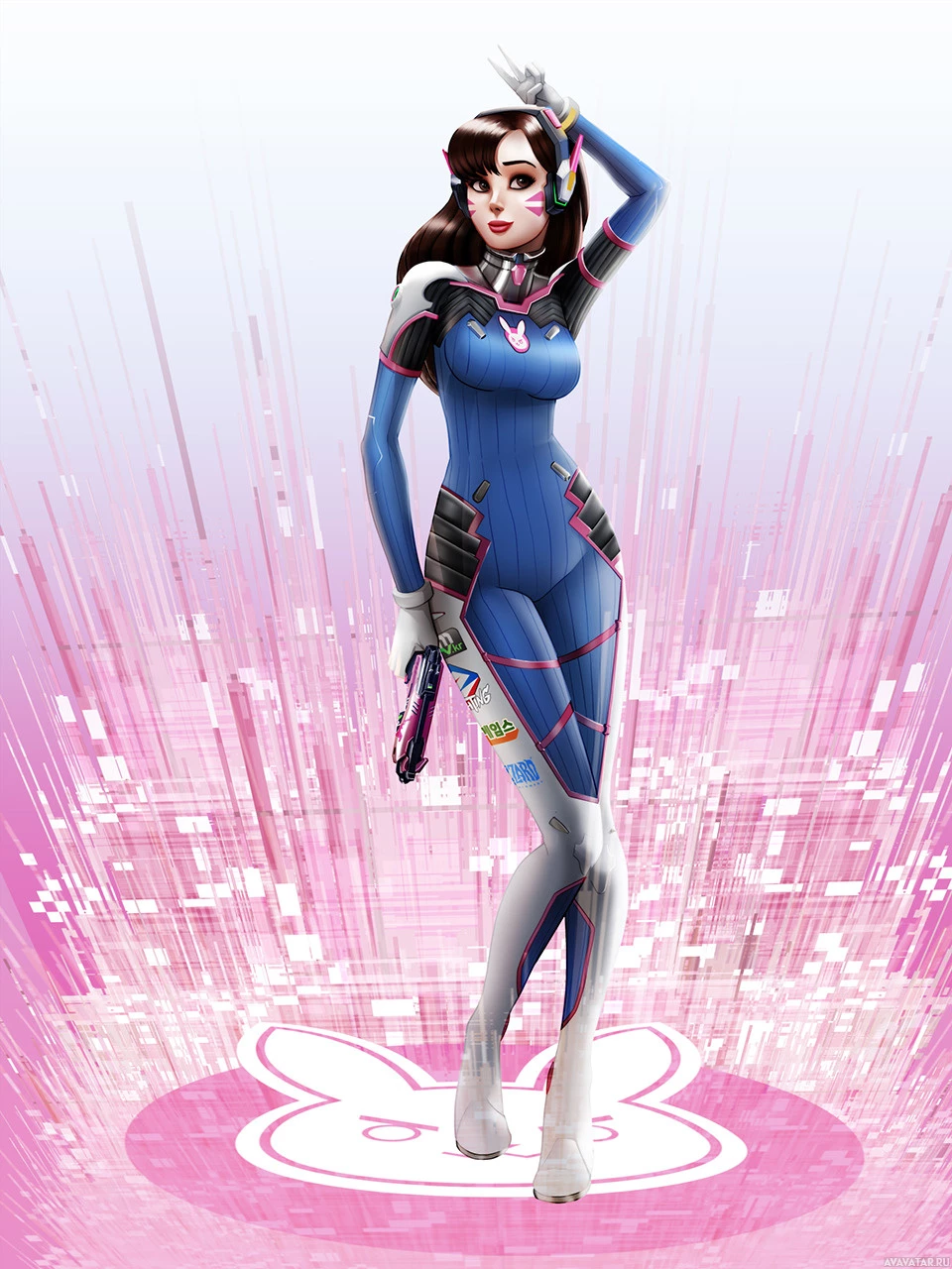 an animated character from the game "Overwatch." This character is known as D.Va, and she is a cyborg mech pilot who is part of