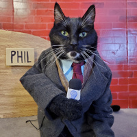a humorous take on a news program where the cat acts as a reporter named "Phil."