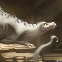 a fantasy creature that appears to be a blend between a dragon and an otter or some other aquatic creature. It has the body of an otter with its