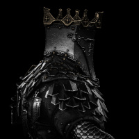intricate designs, shoulder guards, and a helmet adorned with what looks like spikes or a crest at the top. This type of armor is often associated with warriors or knights from historical or fictional settings, suggesting that this character may be