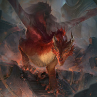 a fantastical scene with a dragon at its center. The dragon is detailed and appears to be