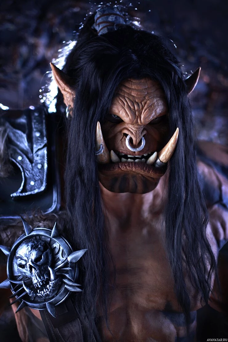 The image depicts a character from the "Warcraft" universe, known as an orc. This