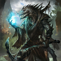 a fantasy character that resembles a reptilian humanoid. This creature has