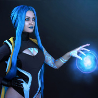 a floating orb or ball of light, which appears to be emanating from their palms. This is a fantasy-themed costume that might be inspired by characters from
