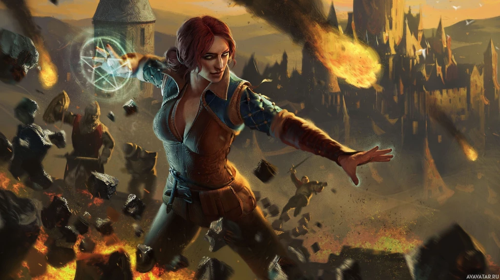 Triss Merigold, known for her intelligence and magical abilities. She is shown in