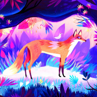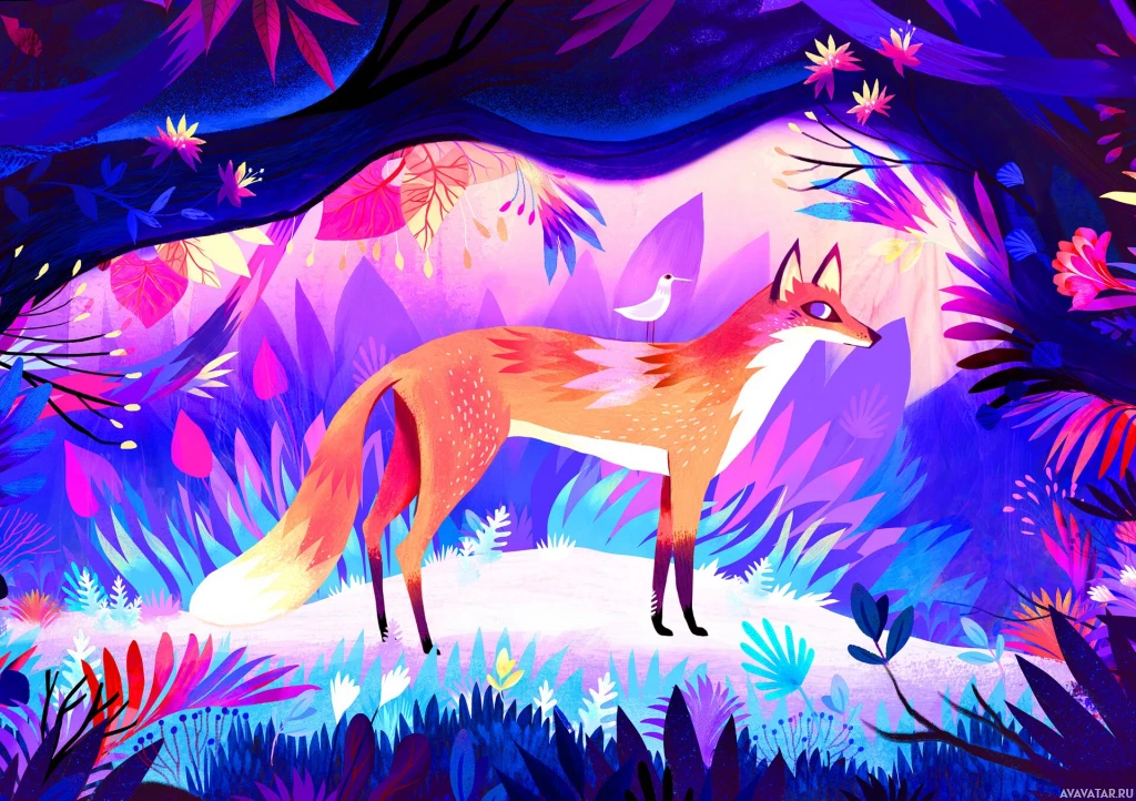 The image features a stylized illustration of a fox. It appears to be in a fantastical or magical setting, with