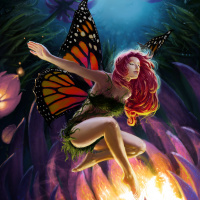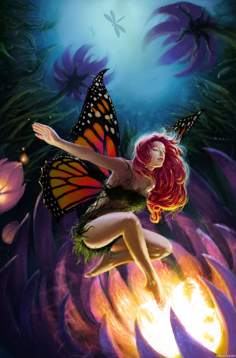 a female character with red hair, who appears to be a fairy. She is adorned in what looks like traditional fairies' attire, including