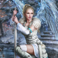 На картинке изображен фантастический персонаж, широко известный как Ледяная королева из игры «Мир Warcraft». Она изображена с крыльями и с мечом, олицетворяющим ангельский облик. Этот персонаж известен своим мощным присутствием и ролью в истории игры.
