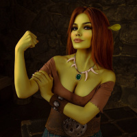 In the image, there is a person cosplaying as Princess Fiona from